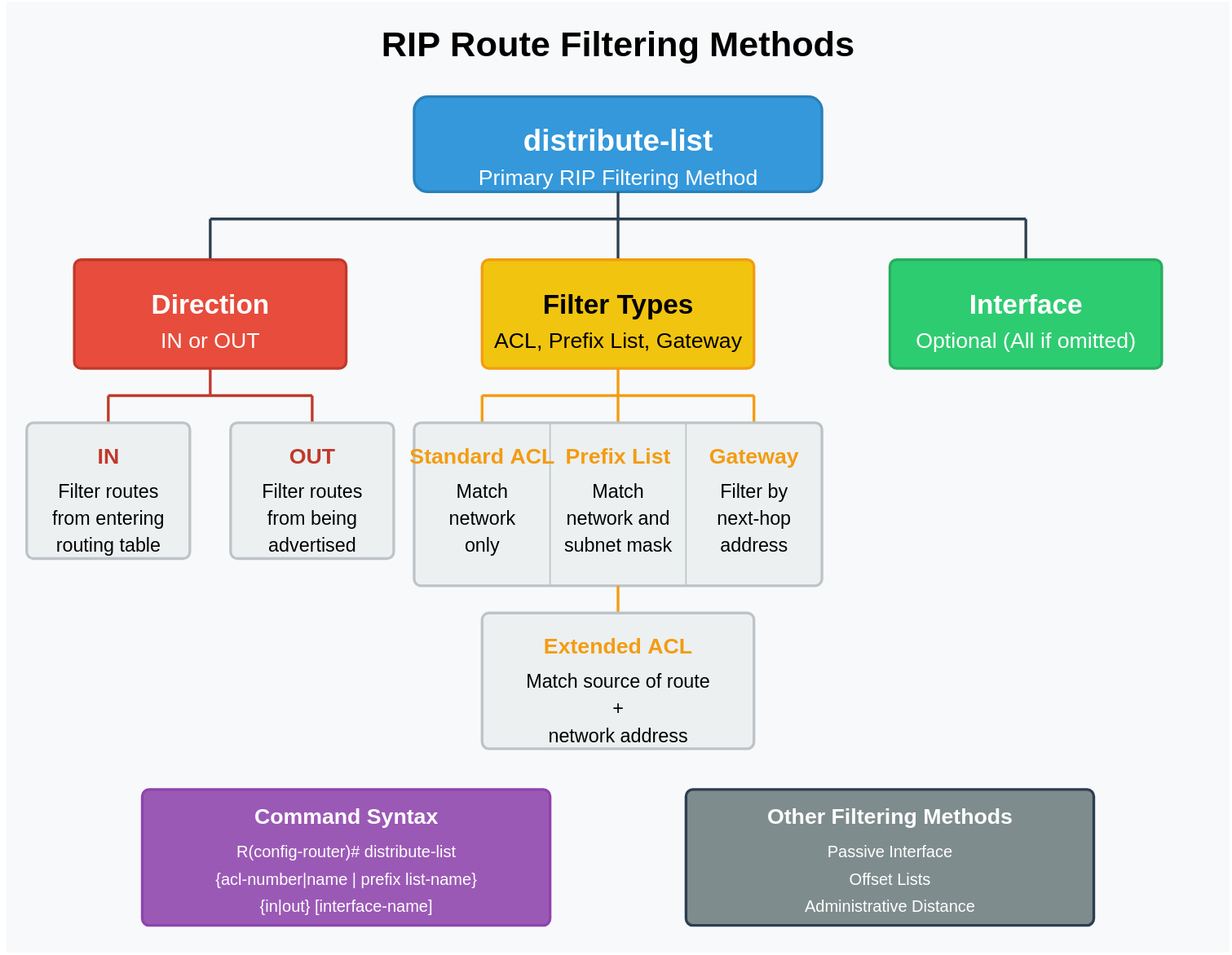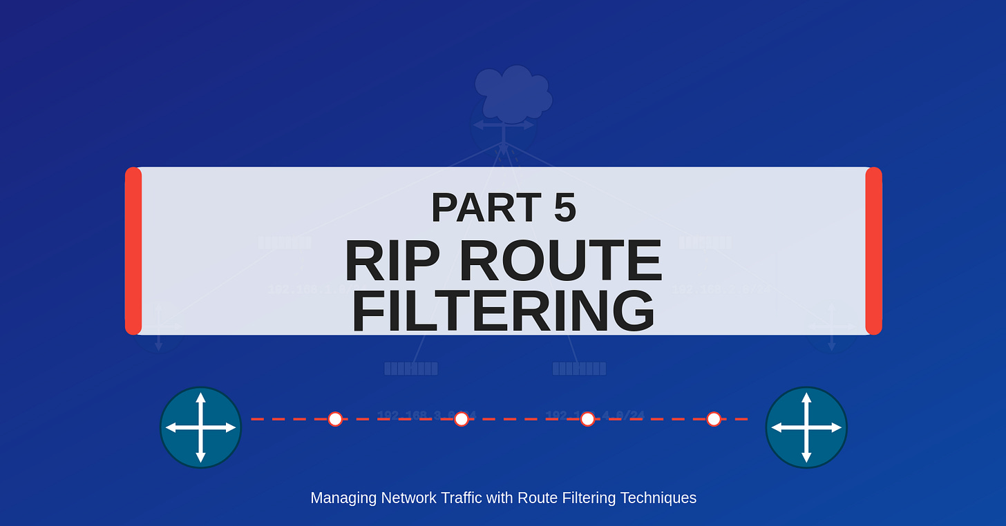 This comprehensive approach to route filtering gives you precise control over your RIP routing domain and helps prevent unwanted routes from propagating through your network.